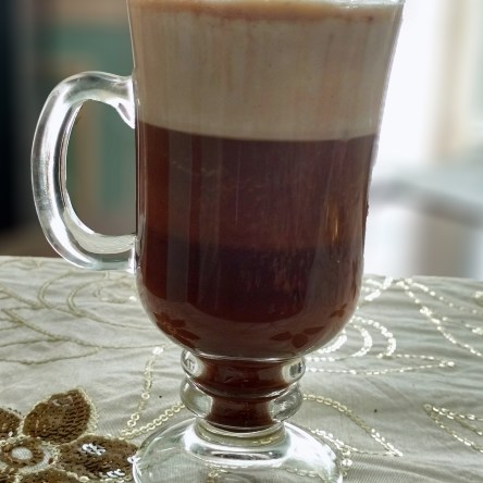 A layer of dark Italian chocolate, a layer of dark coffee, and a layer of heavy cream.