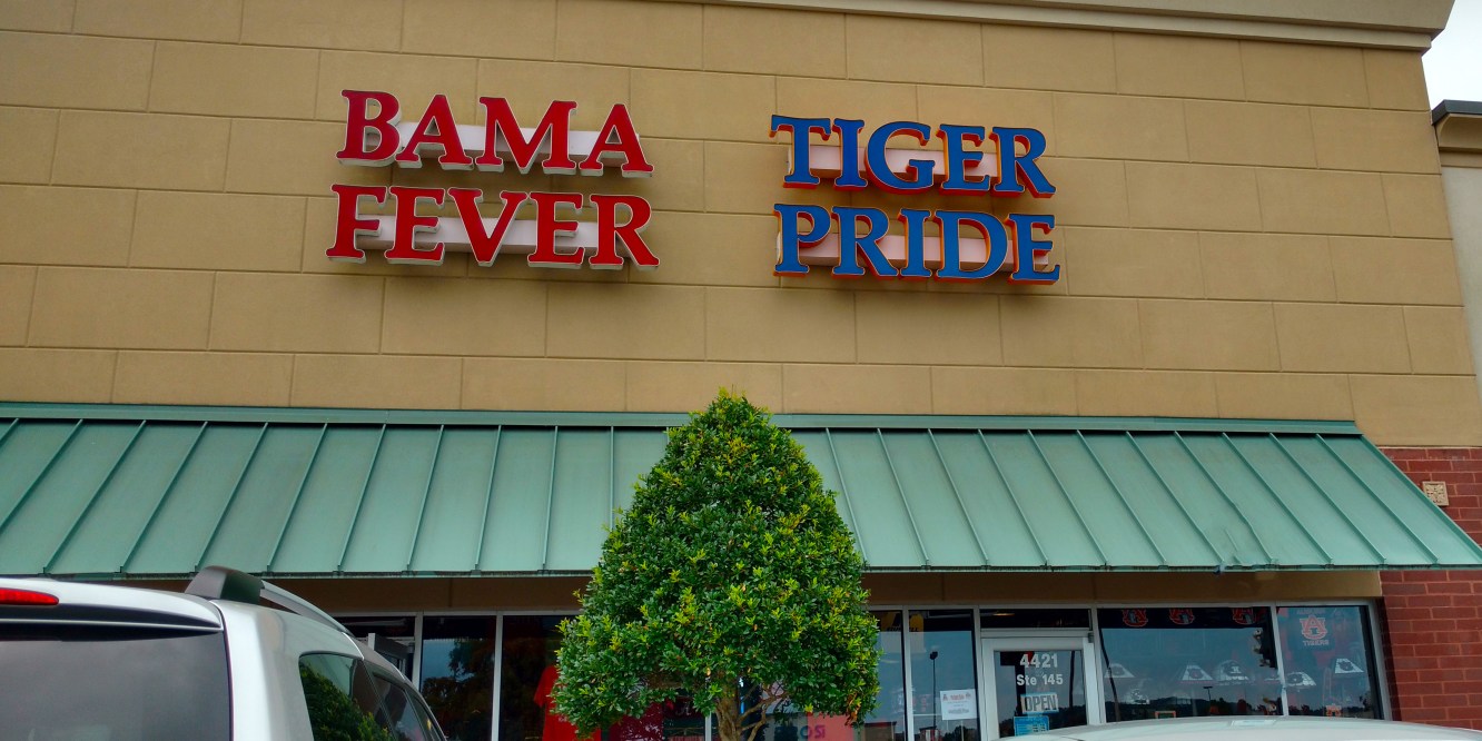 Two schools. Two teams. Two doors into the same store. I always walk in through the Auburn door, no matter where I park.